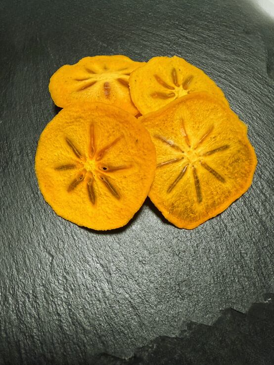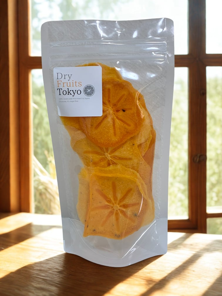 扁平で四角い形をした果汁豊富な種なし柿を渋抜きし、完熟にてドライ加工いたしました。